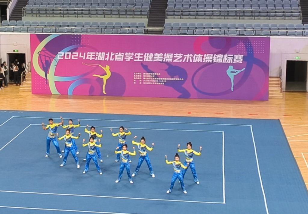 11月29日至12月2日,2024年湖北省学生健美操艺术体操锦标赛大学组赛事在华中师范大学佑铭体育馆隆重举行。本次赛事汇聚了来自全省36所高校的近1000名运动员,他们在赛场上共同演绎了力量与优雅的完美融合。在激烈的竞争中,我校健美操队表现出色,勇夺(自选)徒手健美操(大学乙组)冠军。