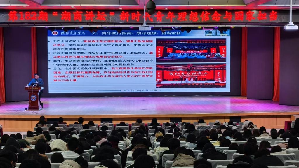 12月11日,我校于武汉校区举行第182期湖商讲坛。本期讲坛特别邀请到副校长程胜军担任主讲嘉宾,以“新时代青年理想信念与家国担当”为主题,与在场师生展开了一场深刻的思想交流。讲坛由学生工作处处长毛宇主持。