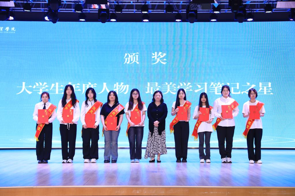 吴俊为获得大学生年度人物、最美学习笔记之星代表颁奖
