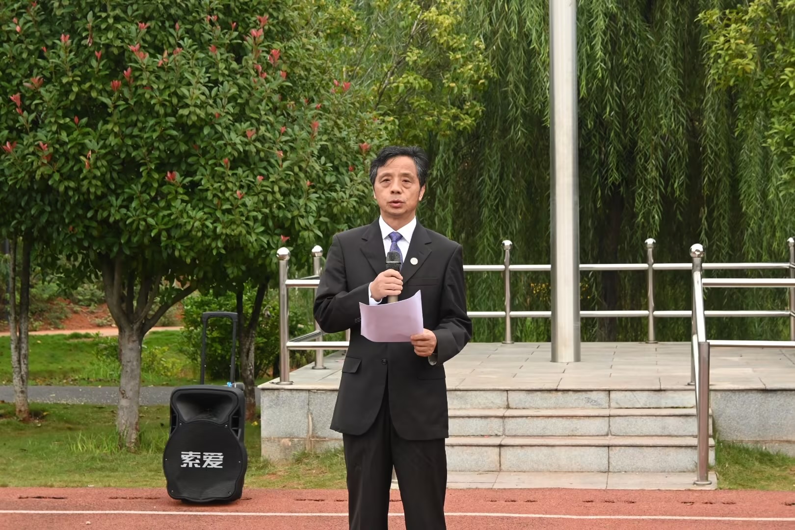 钱建国回顾了祖国76载砥砺奋进的光辉历程,分享了感人的爱国人物事迹。他勉励全校青年高举爱国主义伟大旗帜,听党话、跟党走,常怀爱国之心、报国之志,把青春融入强国建设,让青春之花在祖国和人民最需要的地方绚丽绽放。