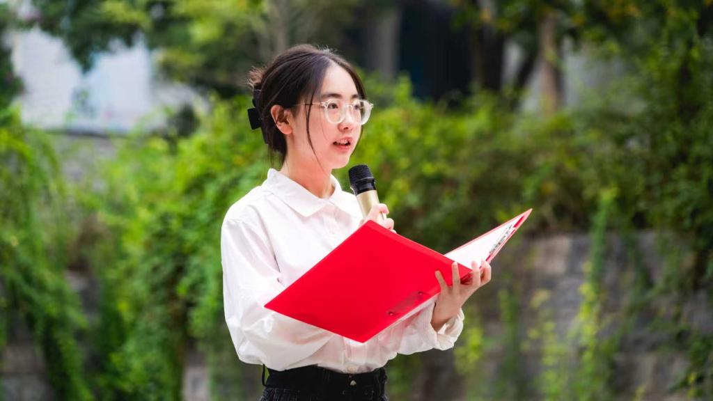 教育学院2023级小教本3班谭华利同学分享了“00后”视角下,见证祖国日新月异发展的深刻感触,抒发了新时代青年爱党爱国的无限深情。她号召全校青年携手将爱党爱国深情转为不竭的前行动力,用奋斗汗水书写无悔的青春年华,为实现中华民族的伟大复兴贡献全部智慧和力量。