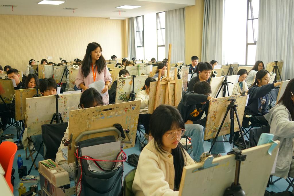 考试过程中,考生们全神贯注投入创作,严格遵守考场纪律,展现出扎实的专业功底和良好的艺术素养。考点负责人、校长助理陈雪芬与相关职能部门负责人亲临现场巡视指导,全体考务人员严谨细致、密切配合,有效保障了考试秩序与公平公正。