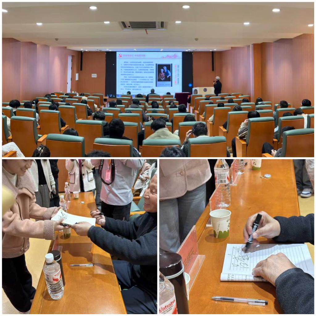 讲座结束后,报告厅内掀起致敬热潮:同学们手捧笔记本、讲座资料踊跃上前,或请吕老题写“红色薪火永相传”寄言,或递上空白书签珍藏这份“有温度的红色记忆”。