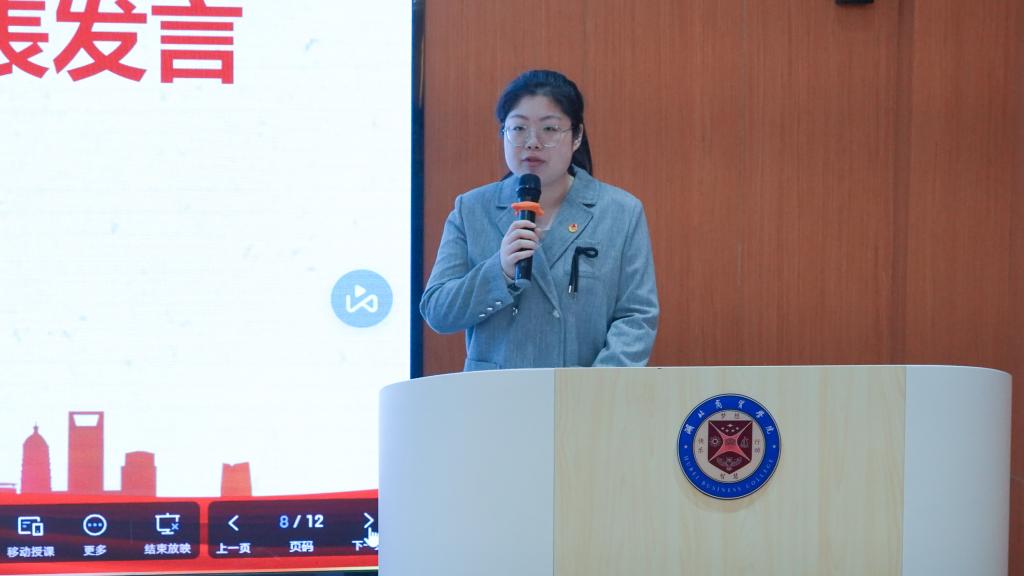 刘魏迪同学作为2024年培训班优秀学员代表发言。她分享了自己在“青马工程”学习的成长与感悟,她表示这段经历是助自己实现从懵懂到清醒、被动到主动的蜕变之旅。同时,她倡议新学员们持续深化理论学习、积极投身实践,秉持担当精神成长为可堪大用的时代新人。