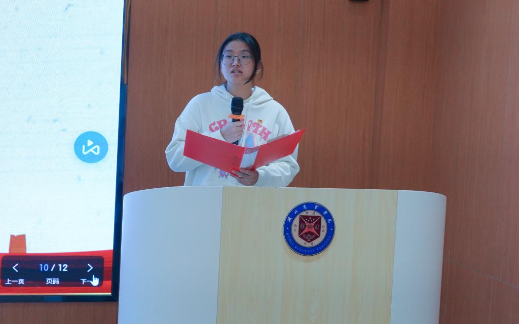 华浩彤同学作为新学员代表发言。她分享了对青马学员信仰、实践与担当的思考,并代表全体新学员作出以“求真之心”筑牢思想根基,以“务实之风”锤炼过硬本领,以“团结之力”共赴成长之约和以“担当之志”勇担时代使命的郑重承诺。