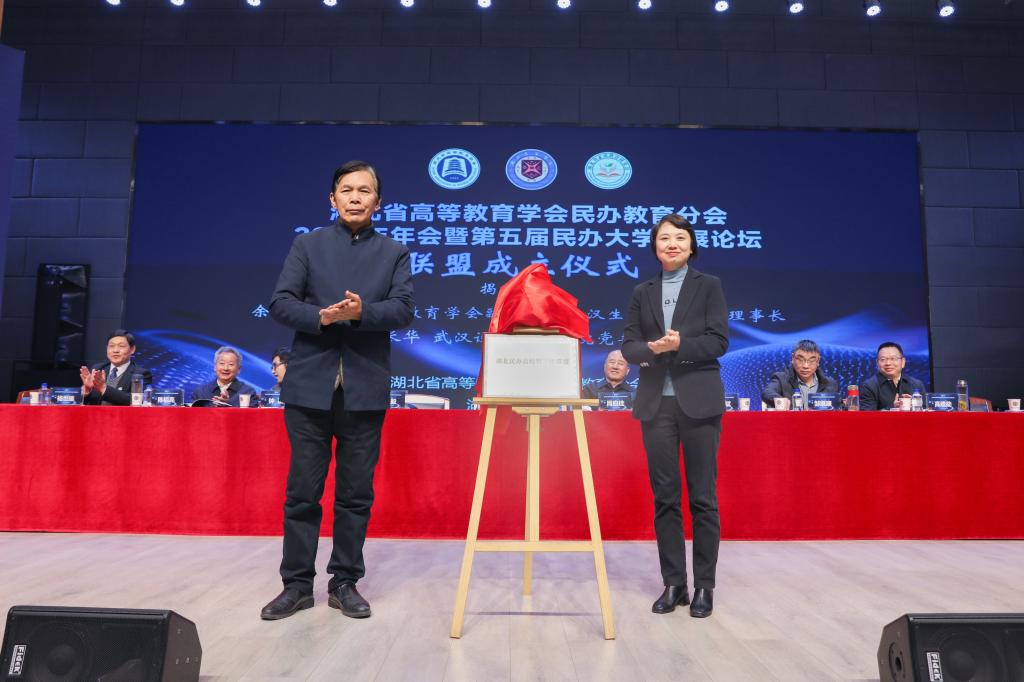 湖北省高等教育学会副会长、武汉生物工程学院理事长余毅、武汉设计工程学院党委书记王长华为联盟揭牌
