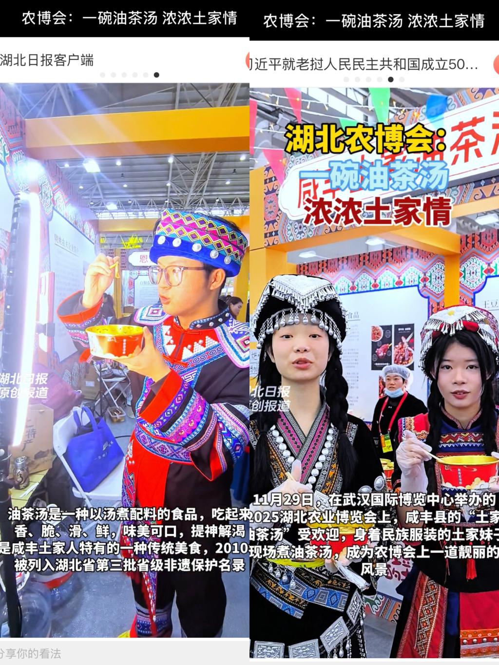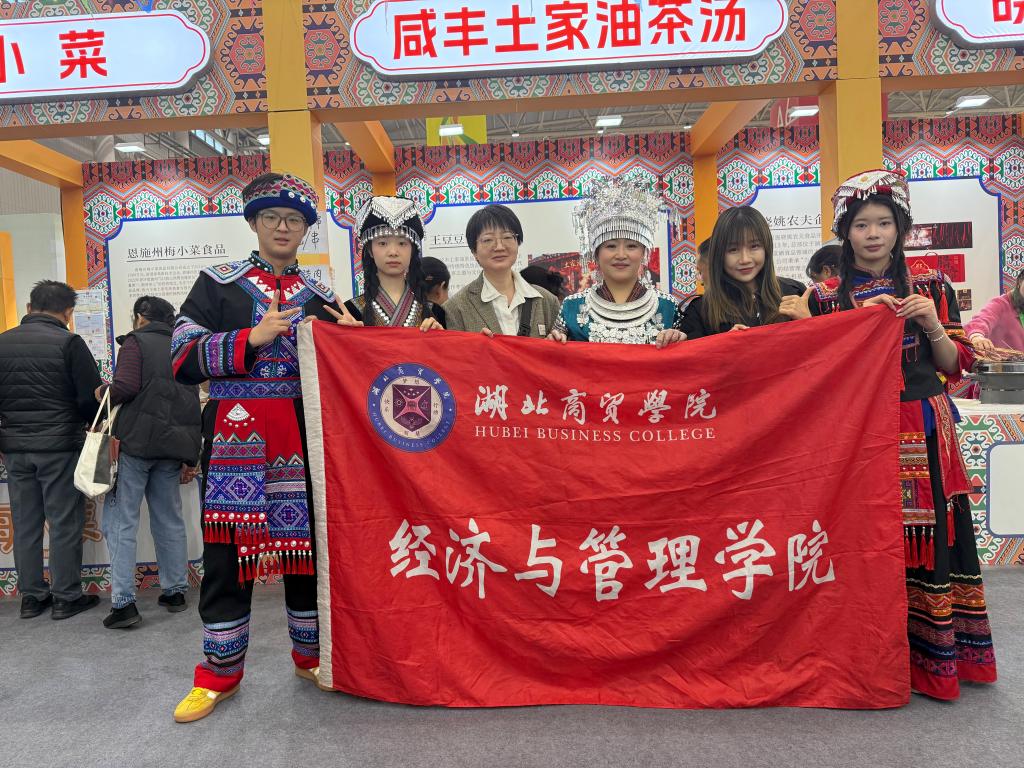 11月29日,武汉国际博览中心的2025湖北农业博览会上,我校经济与管理学院教师肖晓、柯玉洁带着谭涛等三位学子,在“咸丰土家油茶汤”摊位前化身“助农使者”,用专业电商技能为这款非遗农产插上“腾飞翅膀”。此次实践是学院与“王豆豆家土特产”深度联动的成果,以“实践兴农”为抓手,让学子在农博舞台上锤炼本领,助力地方特色农产走出大山、走向市场。