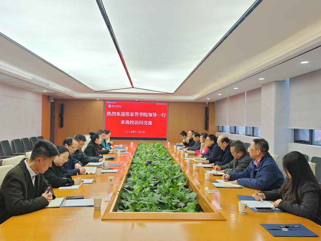 12月3日下午,张家界学院教务处处长庹清一行前来我校考察交流,我校副校长陈靓秋及相关职能部门、二级学院负责人在行政楼三楼会议室参会。座谈会由陈靓秋主持,双方围绕学校建设发展、教学管理、学科建设、产教融合等议题展开深入探讨。