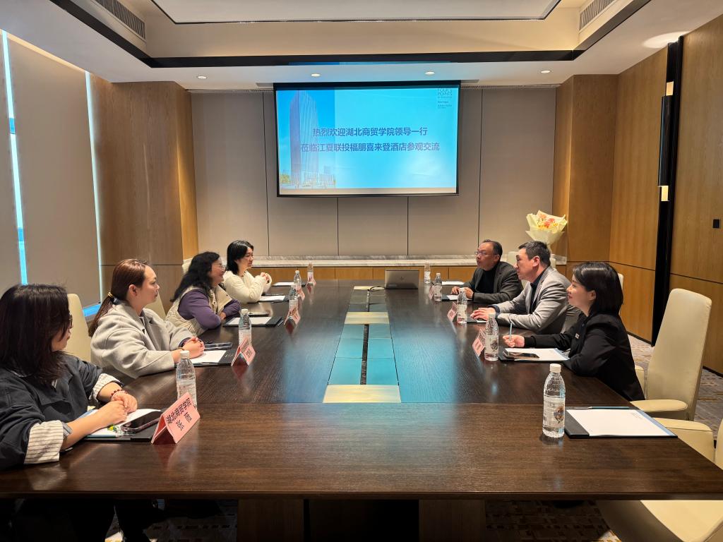 为深入推进产教融合、精准对接高端服务业人才需求,探索外语类应用型人才培养新路径,3月11日,副校长胡柳带领外国语学院领导班子及教师代表,前往江夏联投福朋喜来登酒店开展走访调研。万豪集团校企合作负责人杨骏、酒店负责人郭宝峰、肖倩热情接待学校一行。