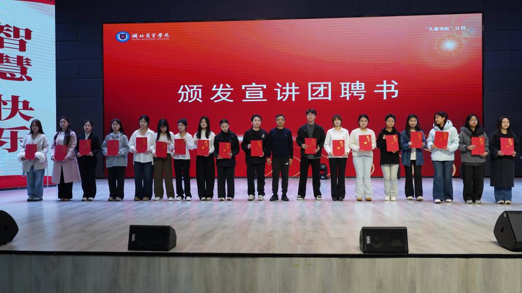 肖坤为宣讲团的成立致以热烈祝贺,并向全校青年学子寄予殷切期望。他强调,青年学子当珍惜大学宝贵时光,以勤学笃行筑牢知识根基,脚踏实地锤炼专业本领,主动投身社会实践,在求知探索与躬身实践中增长才干;更应胸怀远大理想,勇担时代使命,以奋斗之姿绽放青春光彩,不负时代、不负韶华,充分展现新时代湖商青年朝气蓬勃、锐意进取的精神风貌,以及勇毅前行、敢作敢为的责任担当。