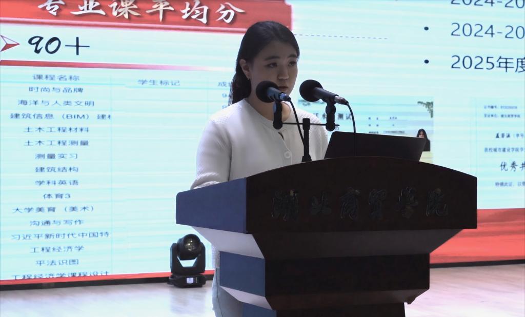 城市建设学院2024级造价专1班盖若涵以“赛绽风华,追求卓越”为主题,以脚踏实地的实践经历诠释了学以致用、精益求精的湖商学风,使同学们真切感受到专业实践的魅力。