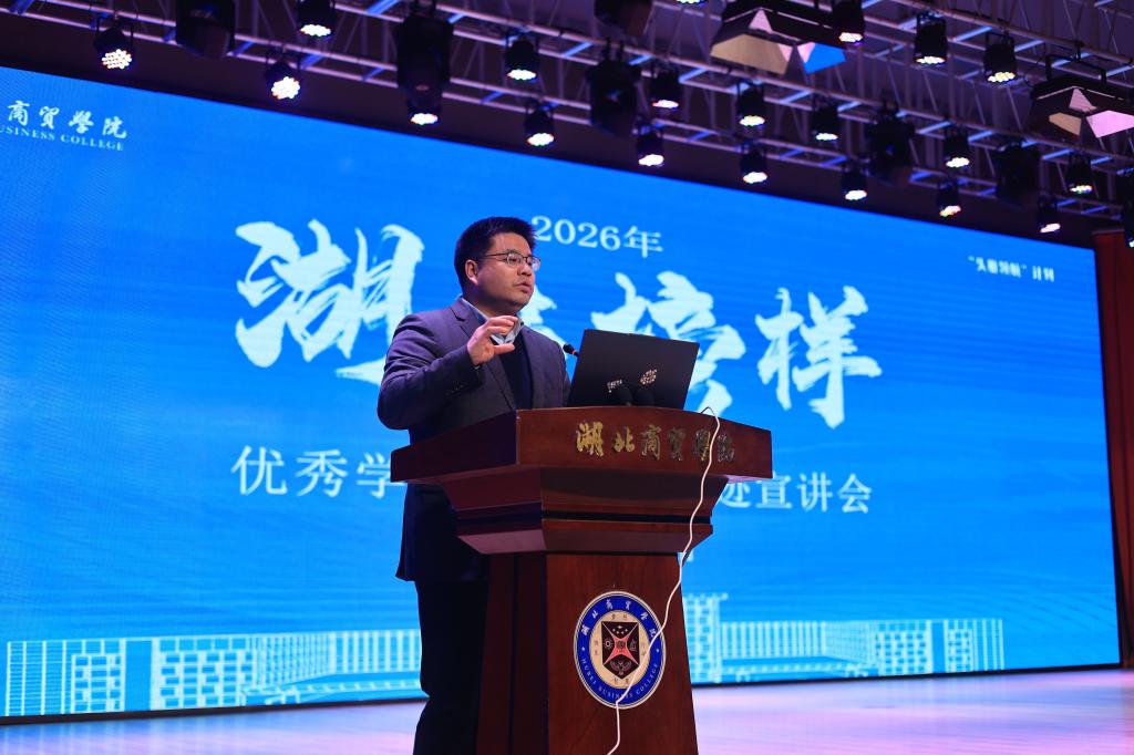 头雁领航,励志笃行。3月25日至26日晚,我校2026年“湖商榜样”优秀学子宣讲团成立仪式暨首场宣讲会分别在两校区举办。副校长肖坤、程胜军出席活动并讲话,学生工作处处长毛宇、副处长王亮,各二级学院党支部书记、副书记、辅导员及千余名学生代表共同参与本次活动,现场洋溢着青春奋进、向榜样学习的浓厚氛围。