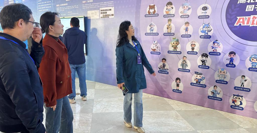 我校代表全程深度参与学习与交流,积极借鉴先进高校在智慧化转型与技术赋能服务方面的创新经验。会后,胡柳一行参观了超星闻道科学导航、未来学习中心等展示区,深入了解智慧图书馆前沿工具与应用,并观摩了湖北省高校AI馆员形象展示,胡柳对我校图书馆设计的AI馆员形象给予了充分肯定。