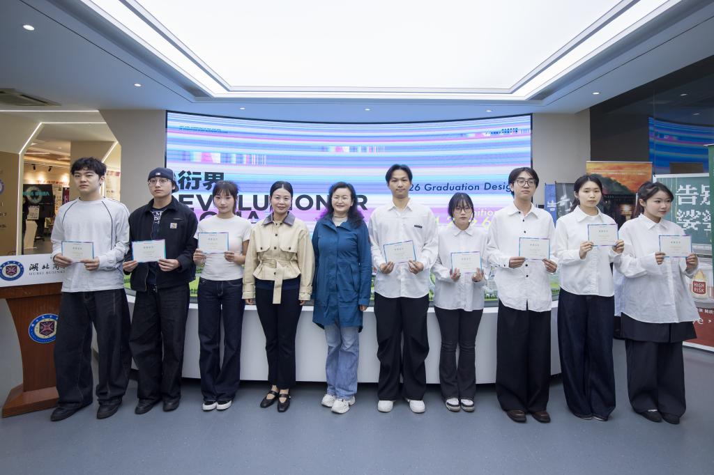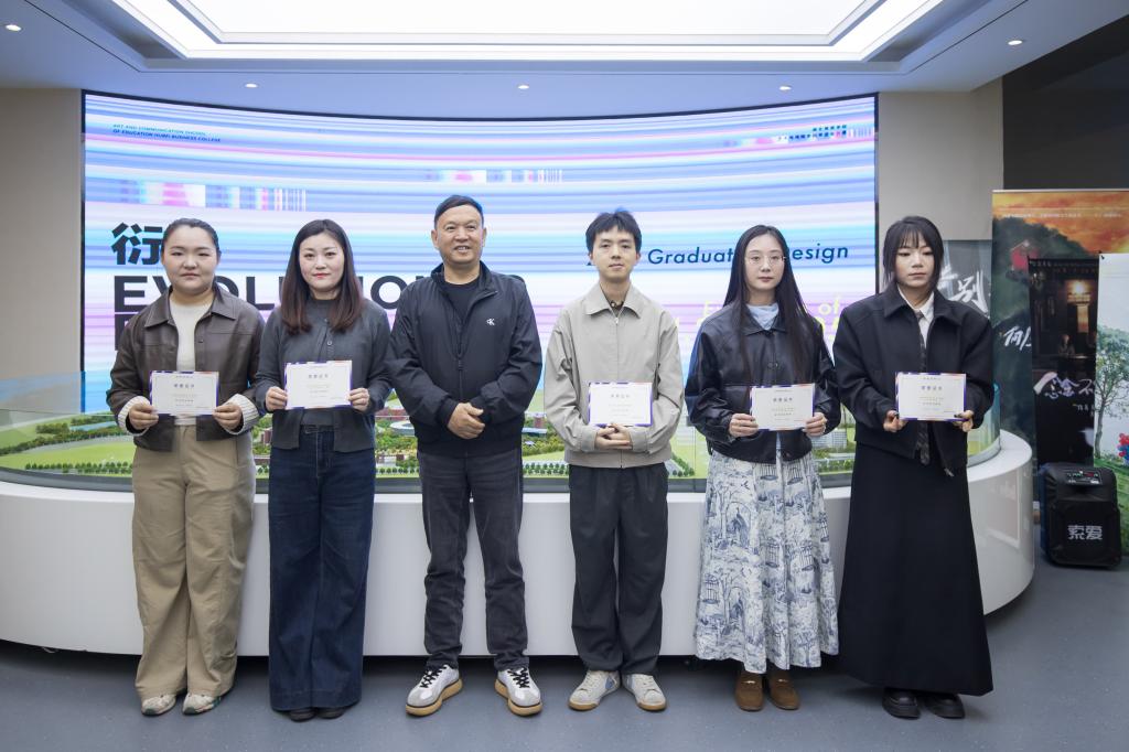 与会校领导为优秀毕业设计作品获奖者及优秀指导老师颁发证书。获奖学生代表发言,分享学习成长与创作心得。