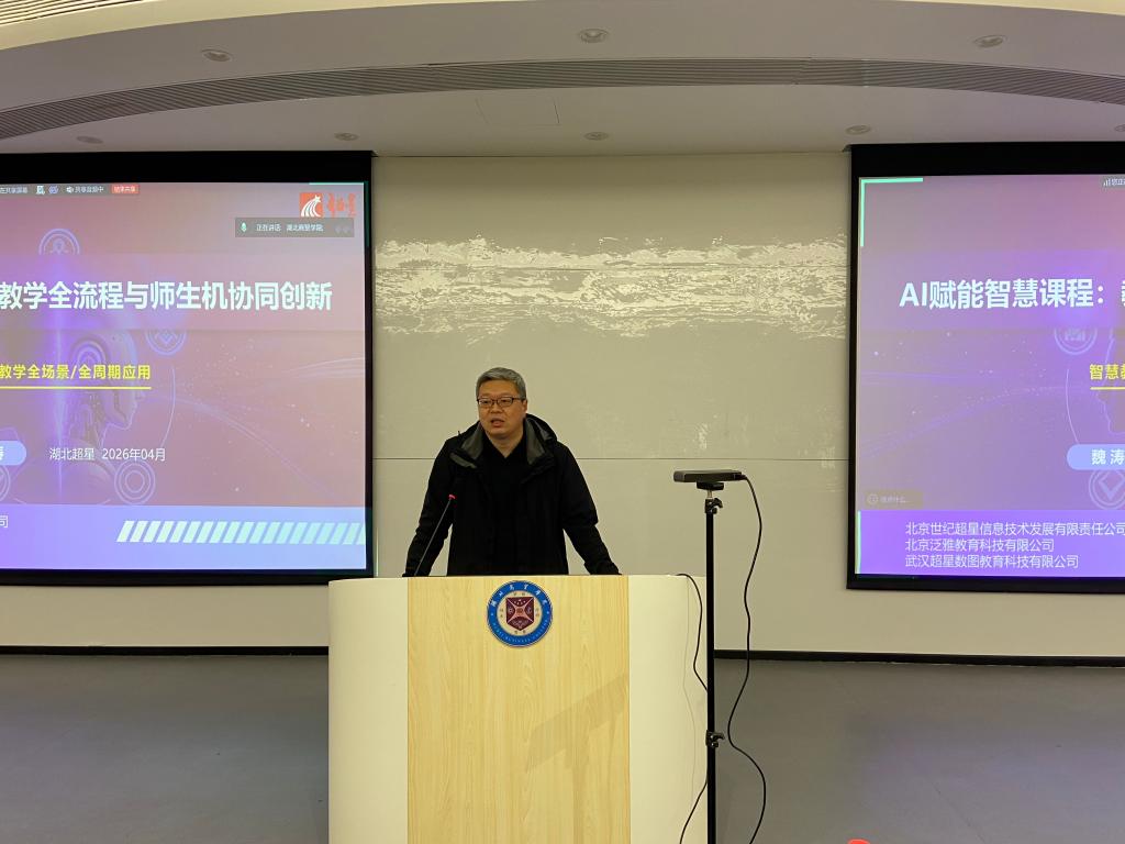 为深入推进高素质专业化教师队伍建设,探索人工智能赋能教育教学改革的新路径,4月22日下午,教务处于鸿博楼阶一报告厅成功举办第一期教学能力与数字素养提升工作坊活动。本期工作坊以“以思促教守初心,以智赋能提质量”为主题,采用校内教师与校外专家分环节分享的形式,既注重校本经验沉淀,又引入前沿视野赋能。活动由教务处副处长盖卫东主持,武汉、咸宁两校区众多一线教师积极参与。