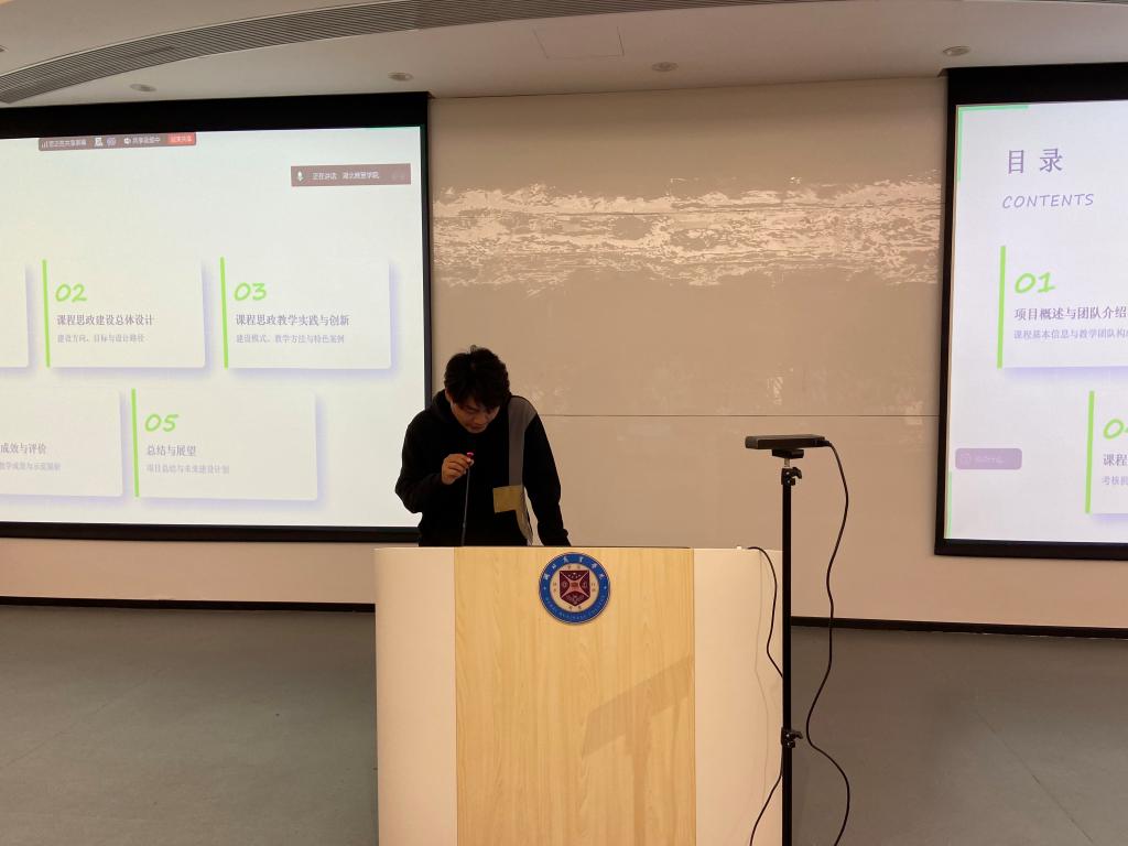 培训分为“课程思政建设成果分享”与“智慧课程建设实践”两个环节。第一环节李璇、邵兵、方珞瑶三位校级课程思政示范课程负责人结合各自学科特点和教学实践,从课程思政元素挖掘、融入路径与评价机制等方面分享了课程思政的创新设计,并以鲜活案例,直观呈现思政教育与专业教学同向同行的生动课堂实践,为在场教师提供了可借鉴的建设思路与实践范式。
