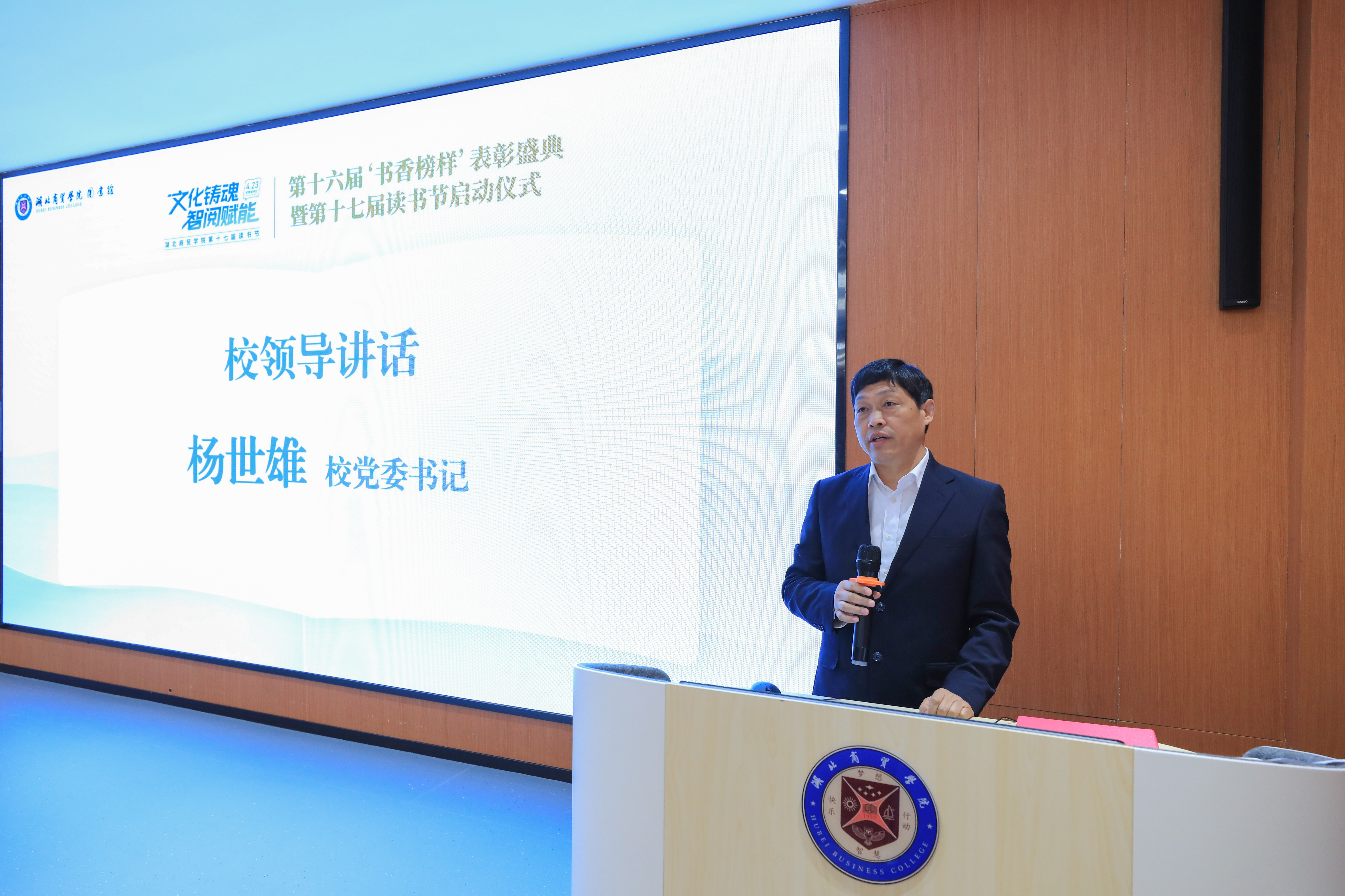 副校长金勇、程胜军在两校区分别宣读了《湖北商贸学院“文化铸魂 智阅赋能”第十七届读书节活动实施方案》。