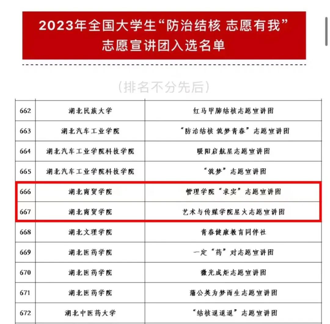 我校管理学院“求实”志愿宣讲团和艺术与传媒学院星火志愿宣讲团两支团队荣誉入选2023年全国大学生“防治结合,志愿有我”志愿宣讲团。