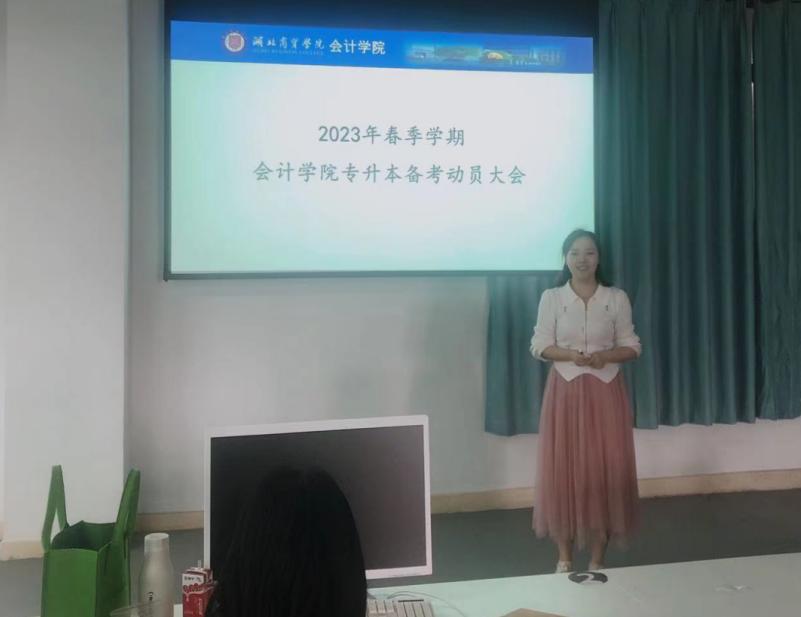为帮助学生树立学习目标、增强学习信心。2023年4月22日,会计学院于咸宁校区XSA-304召开了2023年春季学期专升本动员大会,会议由会计学院教师陈漫芸主持。陈漫芸老师向22级会计专业同学介绍了专升本的相关政策与考试情况,强调目前教育部门对专升本采取扩招鼓励政策,在日益严峻的就业形势下,学生应主动把握机会,积极报名参加专升本考试。同时建议,在备考过程中,学生应勤加练习,不断完善知识体系,同时互帮互助,增进沟通。