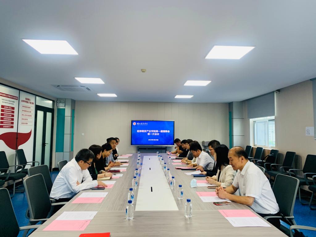 5月26日,证券期货产业学院理事会成立大会暨第一次理事会会议在经济学院举行。 湖北省证券期货业协会会员部副主任陈超、长江期货股份有限公司副总裁夏凉平、美尔雅期货有限公司运营总监邱继萍、长江证券武汉分公司渠道总监王晓平、长江证券投教基地负责人张睿、国泰君安证券京汉大道营业部总经理郭典典及经济学院党政班子出席会议,会议由经济学院副院长盖卫东主持。