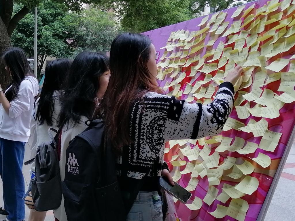 同学们将自己的“秘密”投入“树洞”当中,同时随机抽选出其他同学投入的“秘密”,用自己的方式进行解答,并张贴在展板上等待“认领”。通过此种方式旨在促进广大学生纾解内心的烦恼,转换视角,换位思考,实现互诉互愈。此次活动共吸引了近500名商贸学生参与。内容包括人际关系、学业压力、情感烦恼等多个方面,现场互动热烈,取得了良好的活动效果。