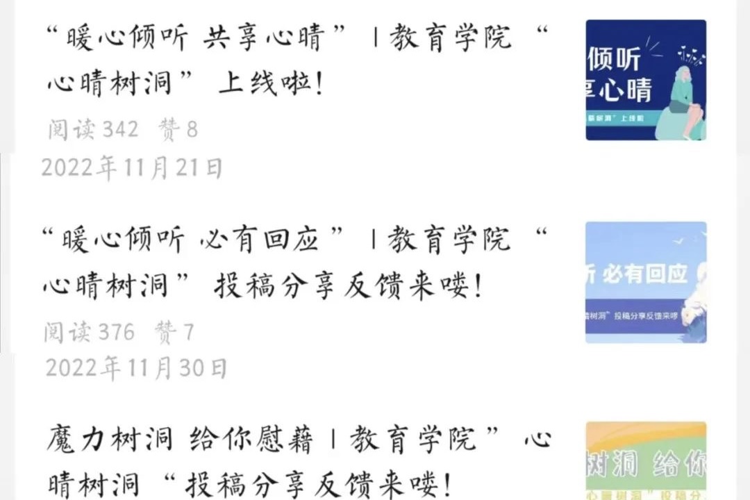 为进一步提高大学生的心理素质,促进大学生的身心健康和谐,宣传普及心理健康知识。“5·25”心理健康月期间,教育学院于国旗台主干道开展“心晴树洞,你我共愈”心理健康主题活动。