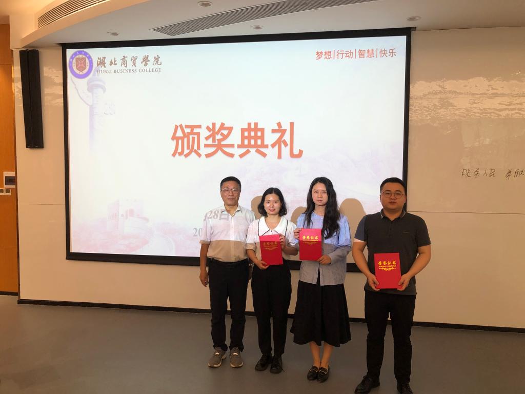 姚晓菊和马克思主义学院班子成员孔波、陈泽华、金敏分别为获奖选手颁发证书和奖杯。