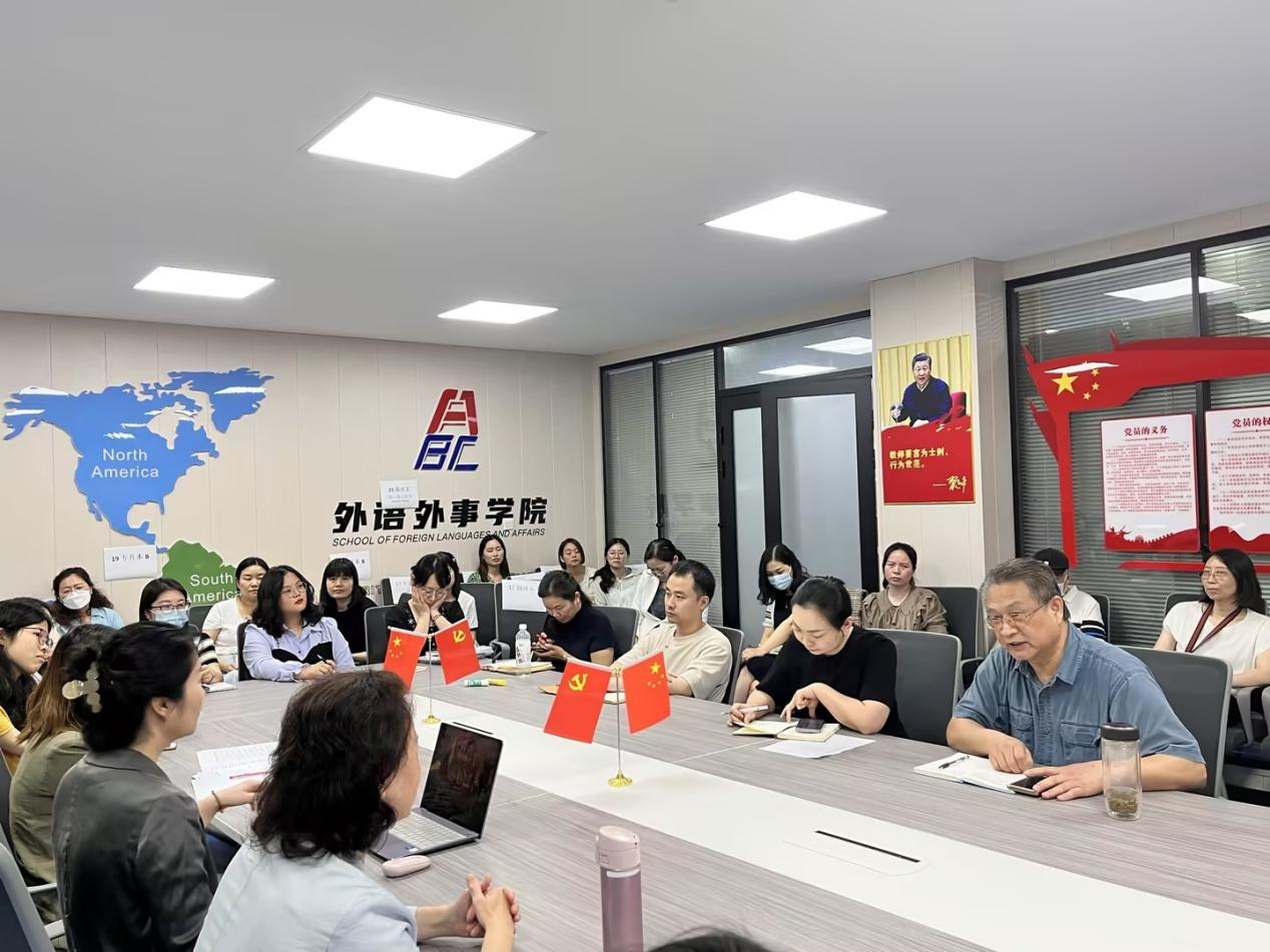 姚范美提出高校课堂高阶性前沿评价维度,主张教师着力教学设计环节,呈现思政元素有机融合、师生生生互动活跃、学生收获显著的创新型产出导向外语授课课堂。高度肯定我院教师课堂准备、组织、授课和管理工作,并以余昊、邓妍和刘一方老师课堂为例,说明如何实践外语高效课堂。针对课堂教学不足之处,姚范美鼓励教师学习先进教育理念与模式,保持教学热情,利用课堂记录、前测后测等教学环节有效提高课程效度。随后,学院教师向姚范美积极提问,展开讨论。