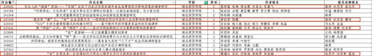 经济学院申报作品选题涵盖绿色食品消费、网络购药等多方面内容。其中,蔡雨萱团队的《舌尖上的“减碳”密码——“双碳”目标下对武汉市居民绿色食品消费现状及影响因素的调查研究》、席状君团队的《银发弄“潮”儿,“抖”出生活新方式——短视频应用对中老年人生活影响的调查研究》及陆权胭团队的《乘“网络”之风,辟“购药”之径——武汉市网络购药行为与意愿的影响因素探究》获得省赛二等奖。曹瑾仪团队的《“疫”后望未来——后疫情时代大学生心理变化及行为趋势的调查研穷》获得省赛三等奖。
