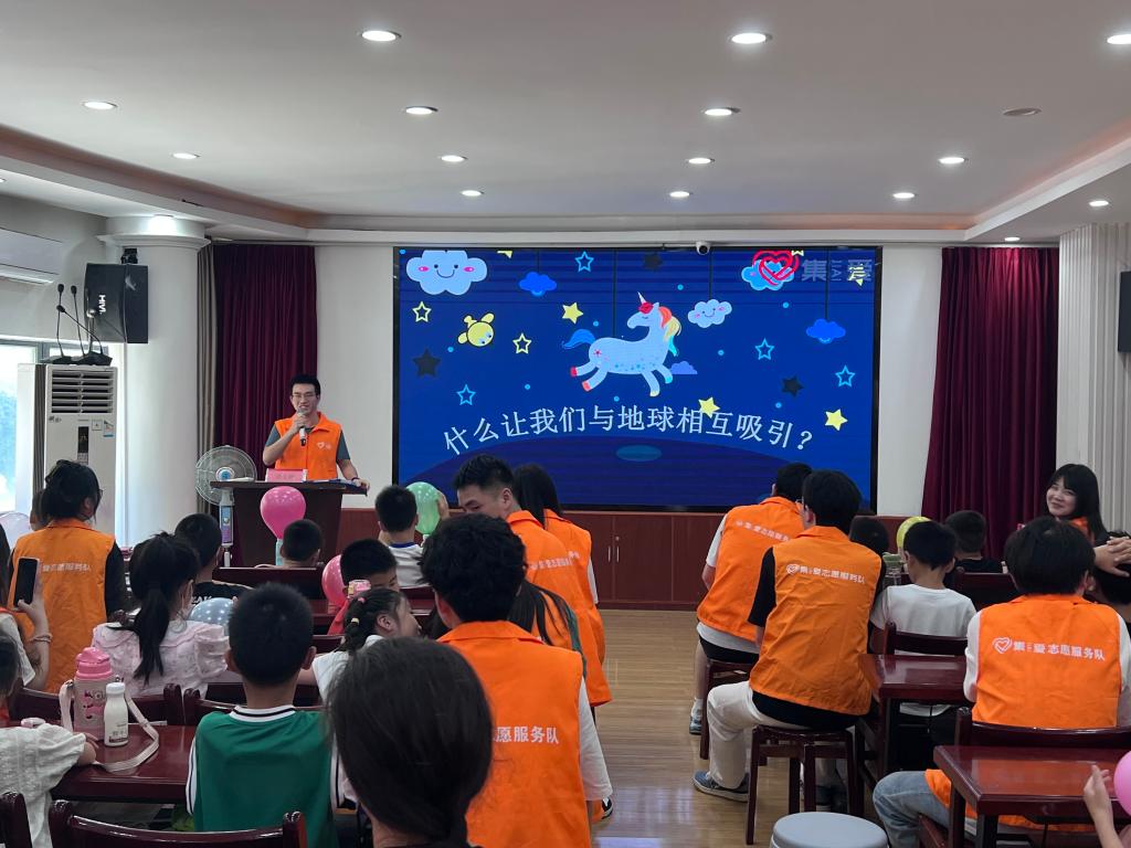 本次实践活动具体为为小朋友科普基础科学知识——什么让我们与地球相互吸引,并带领小朋友完成科学小实验。主讲人张雁斌首先通过提出三个问题,带领小朋友们逐渐走进课堂,深入课堂学习。小朋友们都积极主动的举手回答问题。此次课堂分为三个部分,理论知识的讲解、科学小实验、观看航天员的有关知识。
