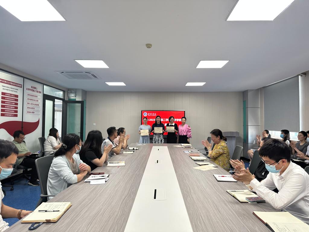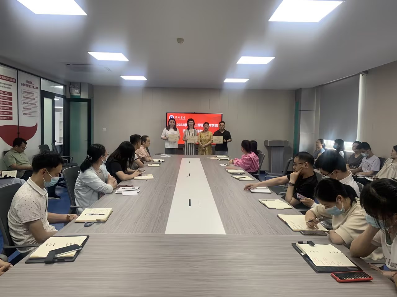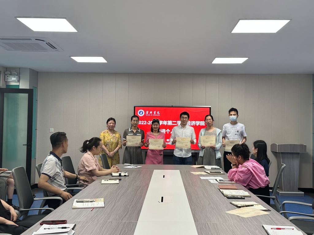 会上,党总支书记吴俊宣布《经济学院关于表彰2022-2023学年第二学期先进个人的决定》,她表示自今年以来,学校本科教学工作合格评估迎评促建工作进入攻坚决胜阶段,学院按照学校要求统筹安排,统一部署,各项工作有序推进。全院教师以学校发展为己任,顾全大局,主动担当,攻坚克难,全身心投入到评建工作中去,在就业升学、课程建设、项目申报、学科竞赛、实习基地建设等领域中涌现出了一批团结拼博、敢打硬仗、成绩突出的先进个人。经学院党政联席会会议决议,决定对相关个人予以表彰。