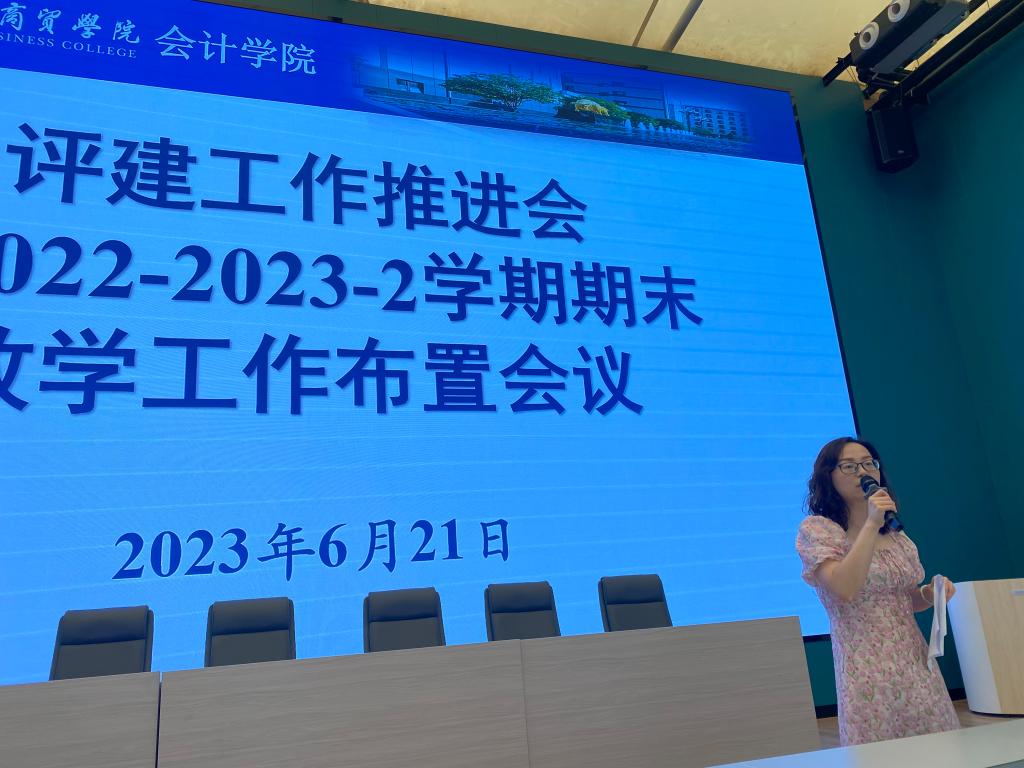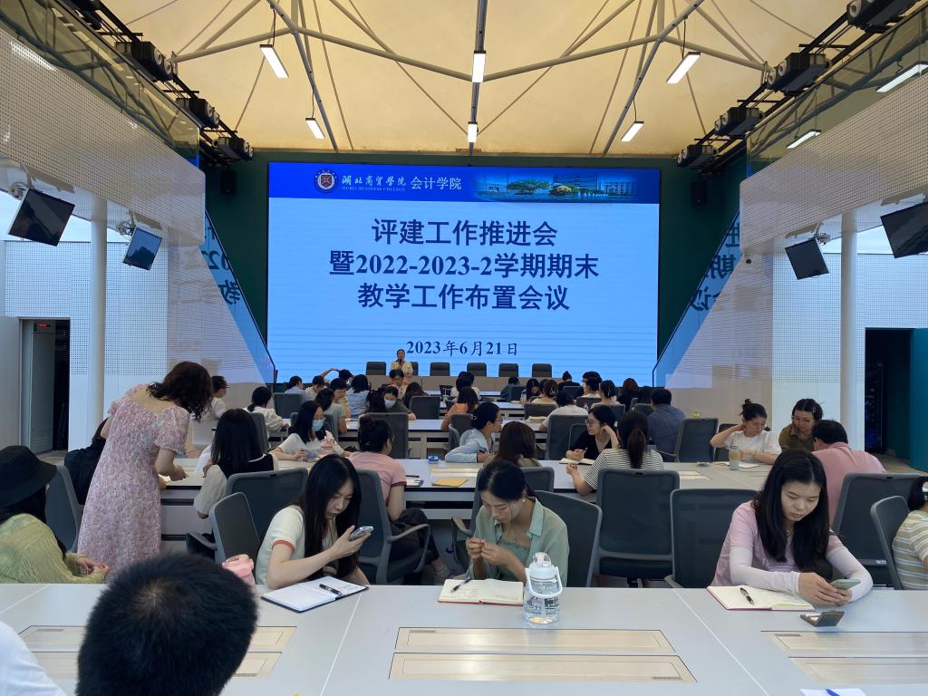 6月21日,会计学院在智能会计学习中心召开评建工作推进会暨2022-2023-2学期期末教学工作布置会议,学院全体教师参加。会议对诊断评估期间专家提出的意见进行了总结并布置下一步工作。
