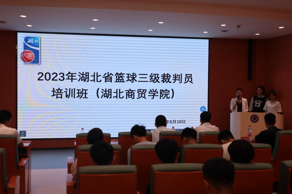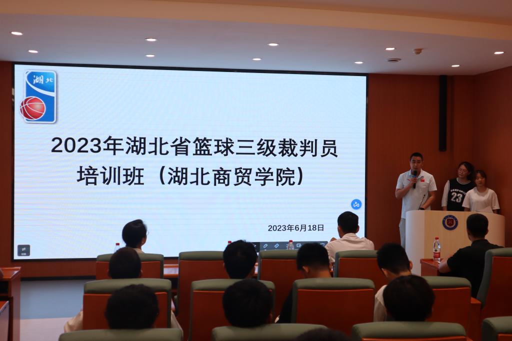 为促进学校应用型人才培养,提高学生篮球裁判工作水平,6月18日,2023年湖北省篮球三级裁判员培训班在我校举行。培训班由湖北省篮球协会和校体育学院联合举办。湖北省篮球协会秘书长常浩、湖北省篮球协会培训部主任刘阳、国家级篮球裁判员陈龙、国家级篮球裁判员金菁、体育学院直属党支部书记何婷及青年教师侯平远出息此次活动,开班仪式由侯平远主持。