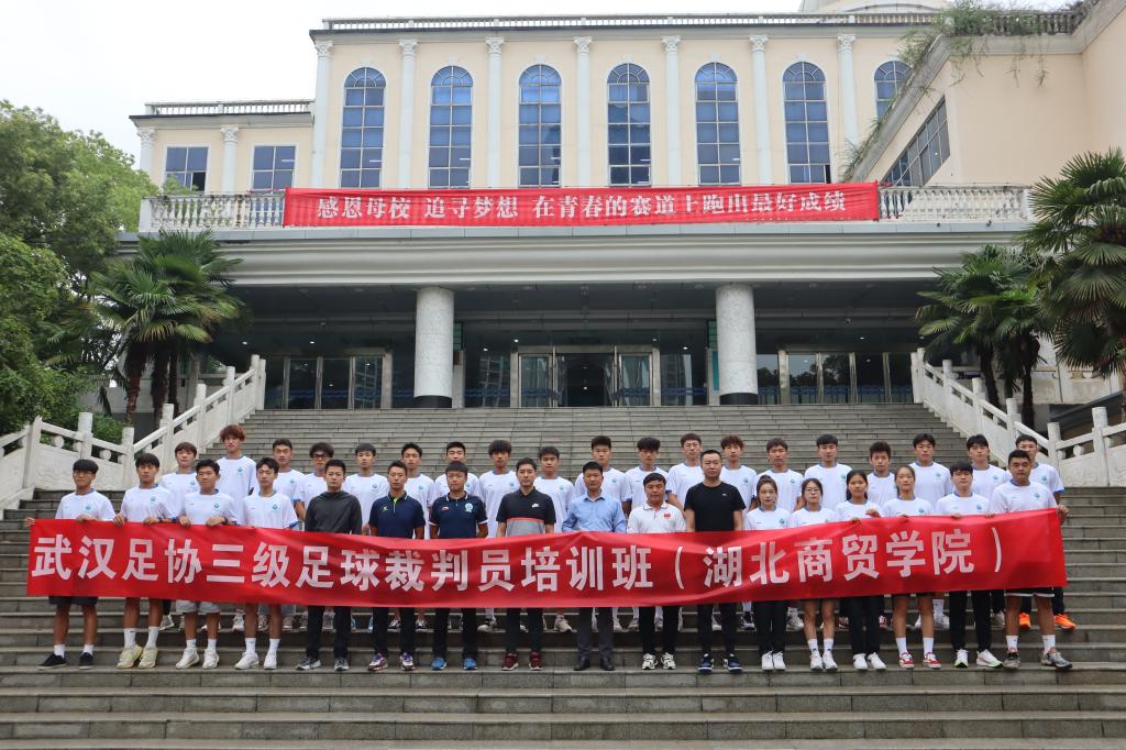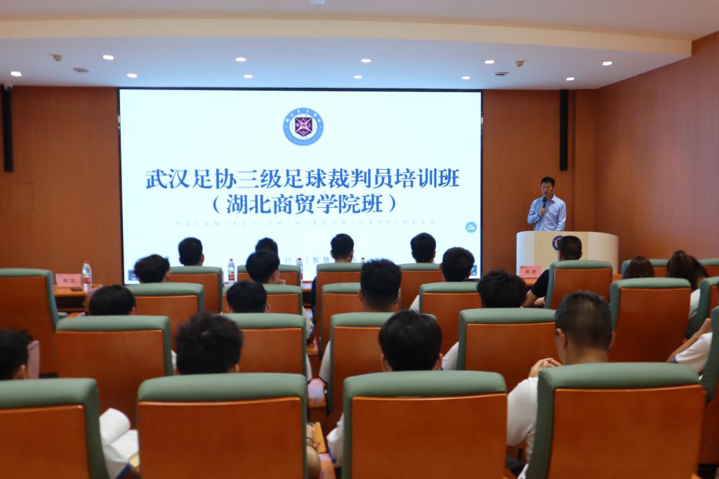 2023年6月17日,由武汉市足协主办,湖北商贸学院承办的2023年武汉市足协三级裁判员培训班在学校图书馆报告厅正式开班。武汉市足协裁判部部长顾春含、武汉足协讲师陈扬、武汉足协裁委会委员李根、国家级裁判员张景明、我校体育学院院长熊浩、体育专业教研室主任汤洋以及分团委书记韩夏出席此次活动,来自全校30余名学生参加此次培训,活动由韩夏主持。