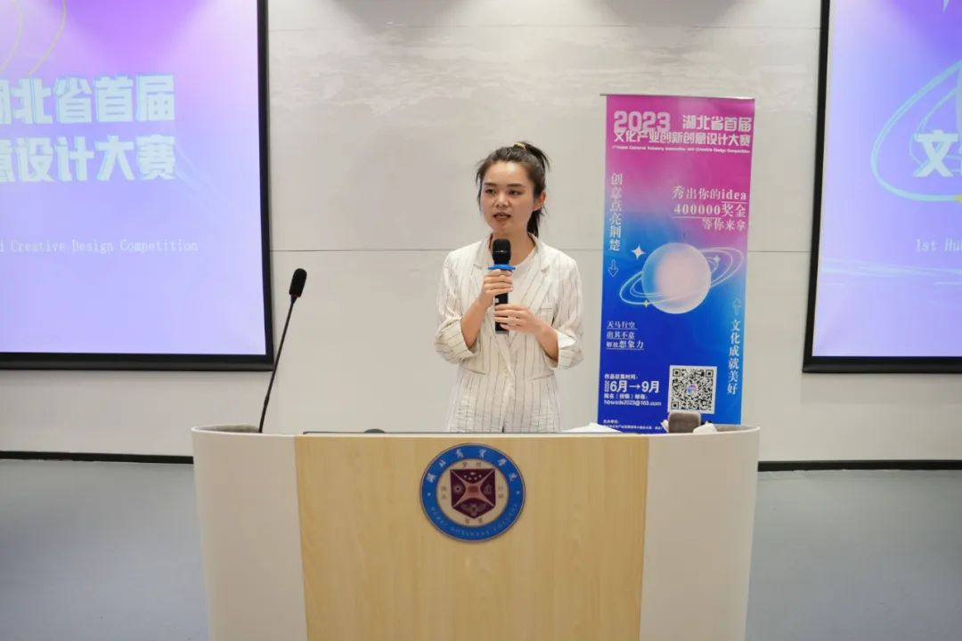 6月16日上午,由湖北省文化产业发展领导小组办公室、湖北广播电视台(集团)、湖北日报传媒集团共同主办的湖北省首届文化产业创新创意设计大赛推介活动在我校鸿博楼J1成功举行。湖北卫视事业部制片人严菁菁、艺术与传媒学院副院长袁航及相关工作人员和学生出席本次活动,袁航担任活动主持。