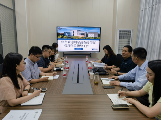 讲座结束后,周教授受胡校长和严院长的邀请,前往管理学院与老师们开展了进一步的深入交流。在交流会上,周教授分享了美国尼亚加拉大学旅游与酒店的专业设置上好的经验做法以及旅游管理专业的发展前景,胡校长则对我校旅游专业的人才培养方案进行探讨,严良介绍了管理学院旅游管理专业的相关情况,并提出当前学院为了培养高质量的应用型人才也在积极进行系列的改革。