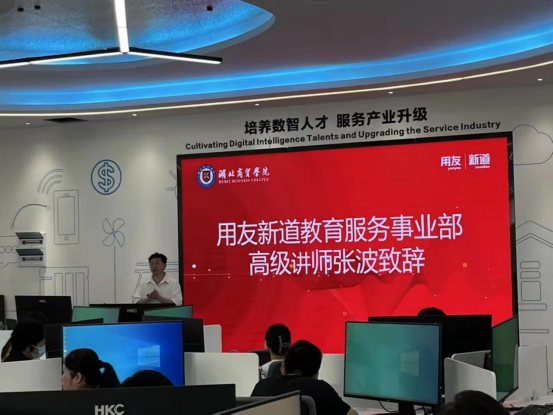 据了解,次培训将持续一周时间,共有数智人力综合、数据挖掘、营销大数据、AIE智镜、数字营销等五个模块的实验课程内容,涉及到管理学院人力资源管理、市场营销、电子商务、大数据管理与应用等专业的多门实训课程。丰富的培训课程内容,既为老师们提供了宝贵的学习机会,也能让老师们充分体验用友BIP产业学院能提供的各项软硬件教学功能。