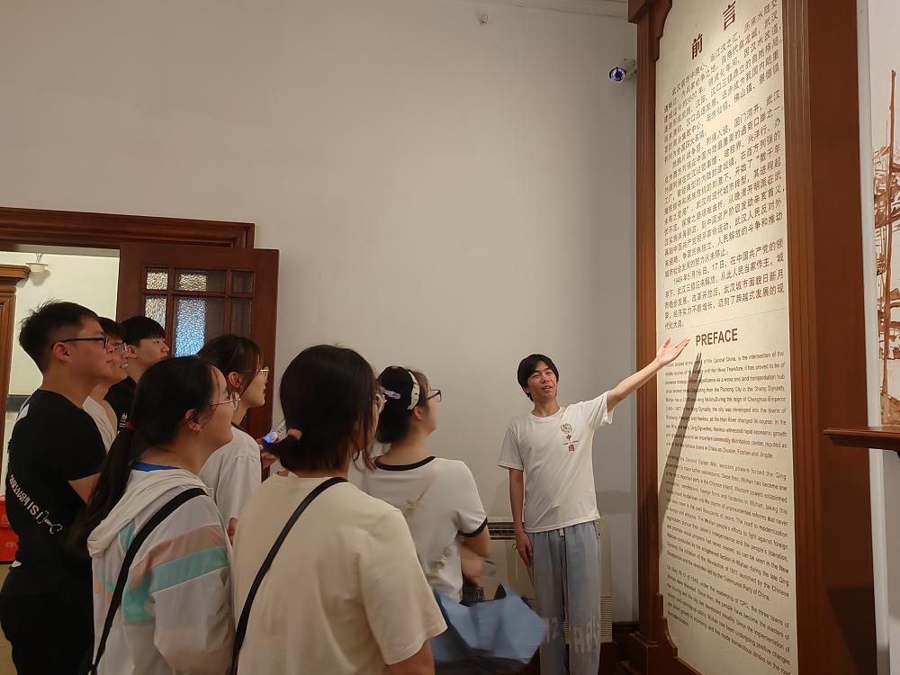 实践团在参观与上海江海关、广州粤海关、天津津海关并称近代中国四大海关——江汉关博物馆的时候,讲解员志愿者曾天青讲述了江汉关博物馆它是中国半殖民地半封建社会的历史见证,在看到百余年前人们在中国积弱时奋起,“一仗接着一仗打,一关接着一关过”时,发现“英雄之城”的底蕴、“敢为天下先”的气魄,原来早已融入这座城市的骨子里。