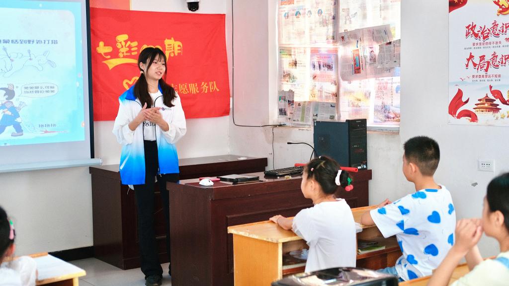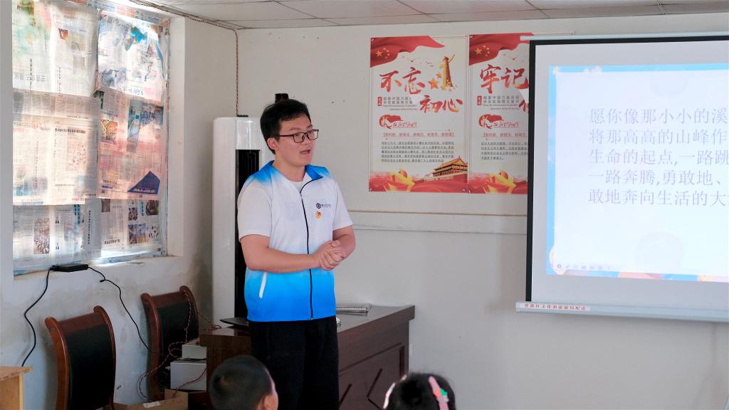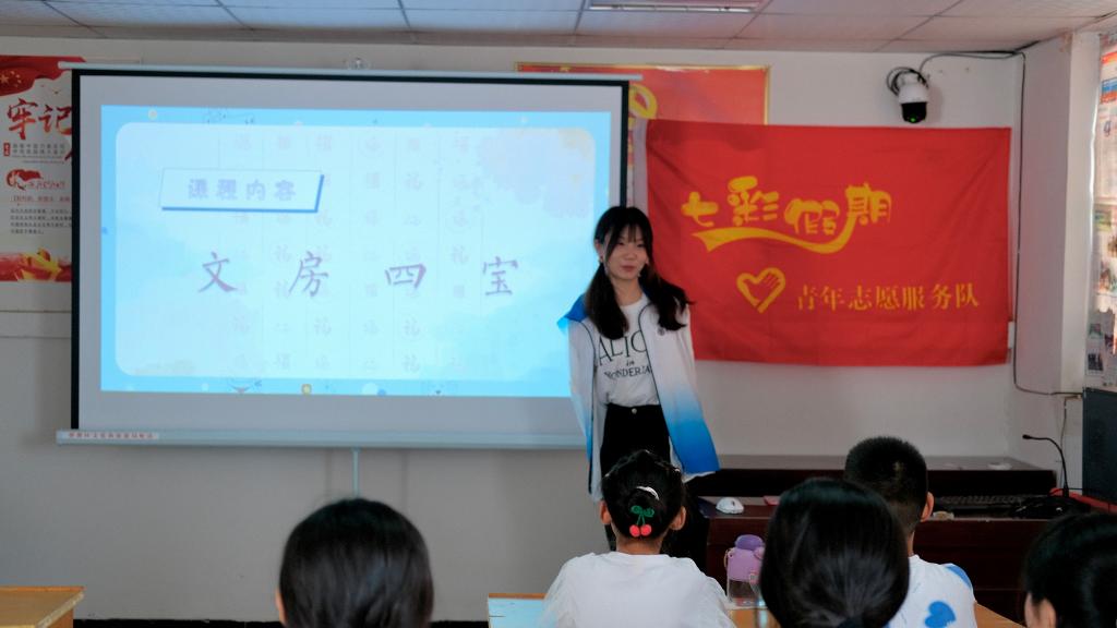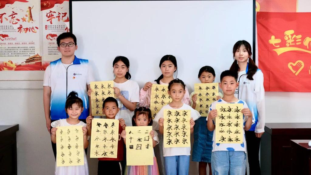 7月8日上午,会计学院铭心志愿队在姜家庙村党员群众服务中心为农村留守儿童开办了一堂生动的公益书法课,这也是“点亮童心,关爱‘随’行”儿童暑期德育教育夏令营第二次课程。课程以《文化传承——书画最美汉字》为主题,通过讲述汉字的演变历史、“文房四宝”与“永字八法”、荆楚成语故事等内容,立体式、多元式、趣味式引导农村留守儿童探寻汉字之美,感悟中华传统文化的博大精深。