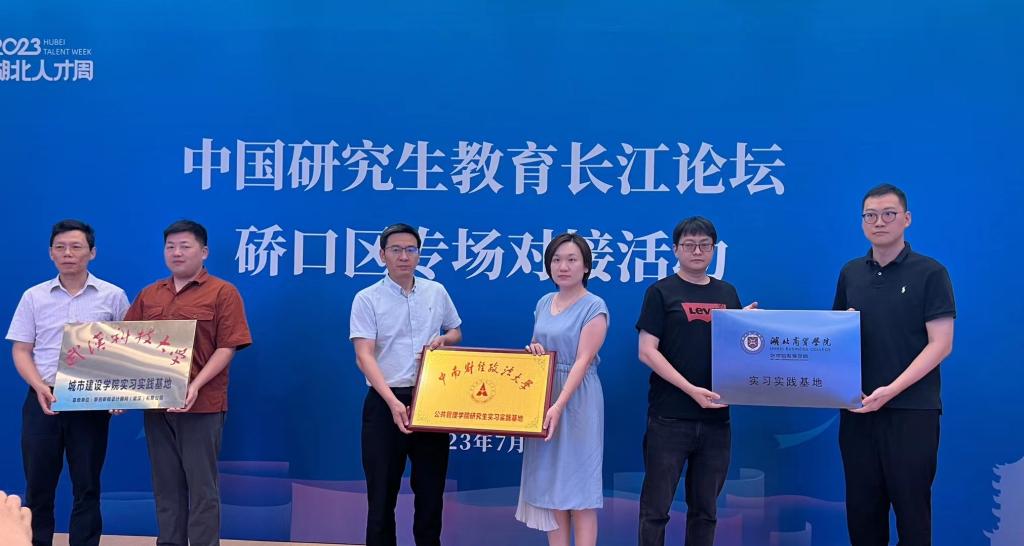 随后,7所高校与硚口区6家重点企业在技术成果转化、平台载体建设、人才培养使用等方面达成合作协议。其中,中南财经政法大学、武汉科技大学、湖北商贸学院分别与团区委、联创新锐设计顾问(武汉)有限公司、武汉市江楚开物科技有限公司共同建立了实习实践基地。