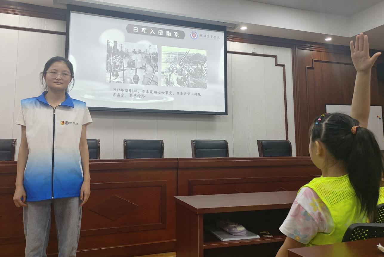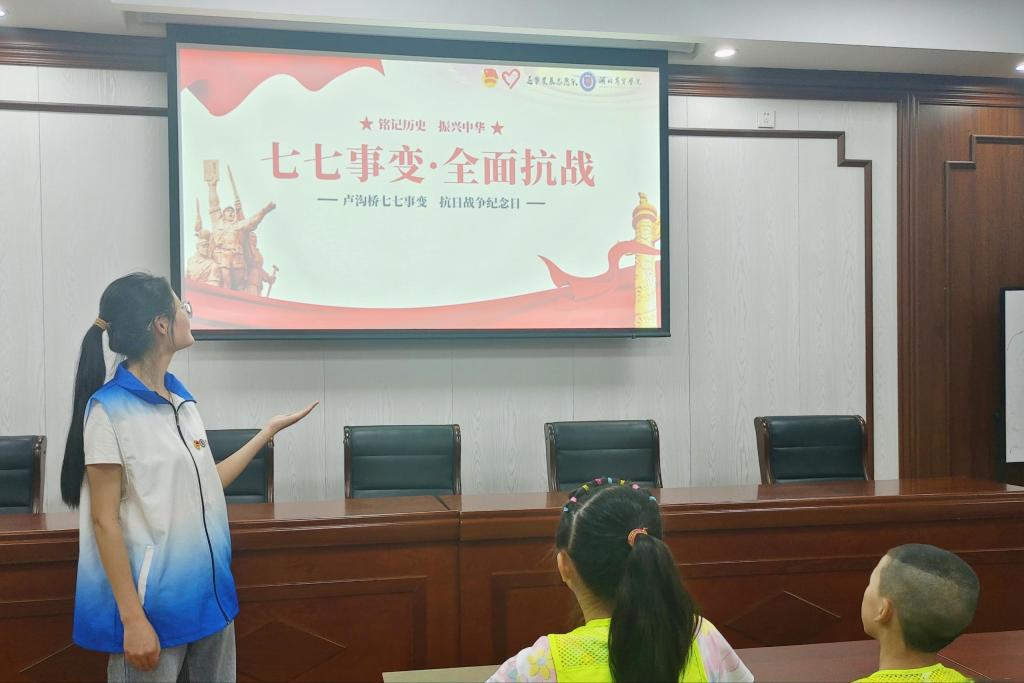 “今天是7月7日,86年前的今天,是中华民族抗日战争全面爆发的日子,我们不能忘,也不敢忘”。志愿者罗鹏月向南湖锦城的少年儿童如是说。