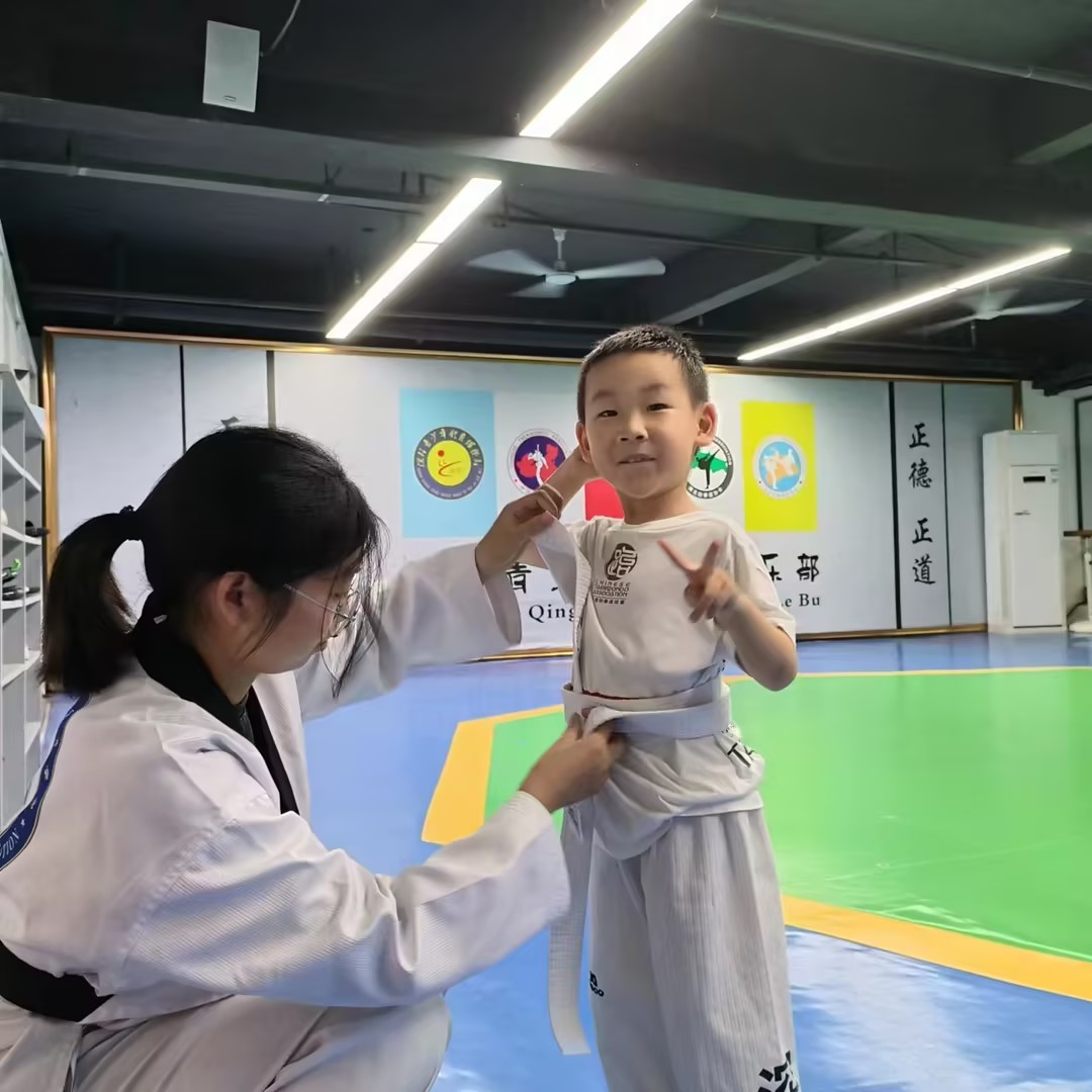 在为期七天的社会实践中,这群来自体育学院跆拳道专项的大学生,将大学课堂上学到的专业技能与体育运动知识“搬”进基层,带给俱乐部的孩子们。以“以礼始、以礼终”的跆拳道精神贯穿在教学全过程,在课程中,学生们不仅学习了基本的跆拳道技巧,还了解了跆拳道的历史、文化背景和道德准则。课程注重培养学生的礼仪和纪律意识,教育他们要尊重他人、谦逊自持,并追求精神和身体的全面发展。队员们也时刻关注每个孩子的进步和成长,根据孩子们的实际情况进行个性化指导和训练,鼓励他们克服困难,引导他们树立积极的心态。孩子们积极参与跆拳道课程,他们用热情和努力投入到每一次训练中。