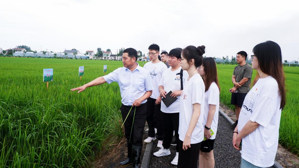 田店镇农办主任田想亮带领队员们参观了高标准实验水稻农田。七月盛夏,正是水稻孕育时节,满眼碧绿的稻田与蓝天白云,构成一幅美丽的田园画卷,这片农田采用了先进的种植技术和管理模式,以提高水稻的产量和质量。在这片农田中,大家看到了现代化农业的希望和潜力,科技作为第一生产力助力乡村振兴,充分展现了乡村振兴的美好蓝图!