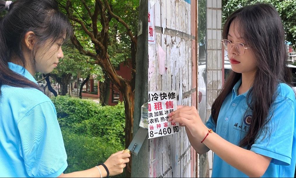 为进一步净化、亮化城市容貌,清除社区内的垃圾“小广告”,给广大居民创造一个整洁优美、文明有序的居住环境。7月20日上午,管理学院“一铲净”暑期“三下乡”社会实践团前往湖北省襄阳市长虹社区开展了“清理社区小广告、助力文明我先行”的志愿活动,对长虹社区单元门、公共设施、楼栋墙体等进行了清理活动。