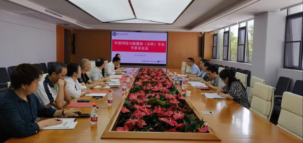 根据学校十四五发展规划,管理学院于8月16日上午在学校行政楼307会议室召开“网络与新媒体”新专业申报论证会。本次会议特邀华中师范大学新闻传播学院副院长彭涛教授、武汉理工大学文法学院副院长刘介明教授、中国新闻社湖北分社艾启平总编辑、湖北经济学院新闻与传播学院院长陈建华教授、校内专家饶欣教授作为论证专家。副校长徐跃进、副校长胡柳、教务处处长张涛、管理学院党总支书记王珉、管理学院副院长徐刚、专业负责人胡文静、汇报人赵静及专职教师戴光甬参加了会议,本次论证会由管理学院院长严良主持。