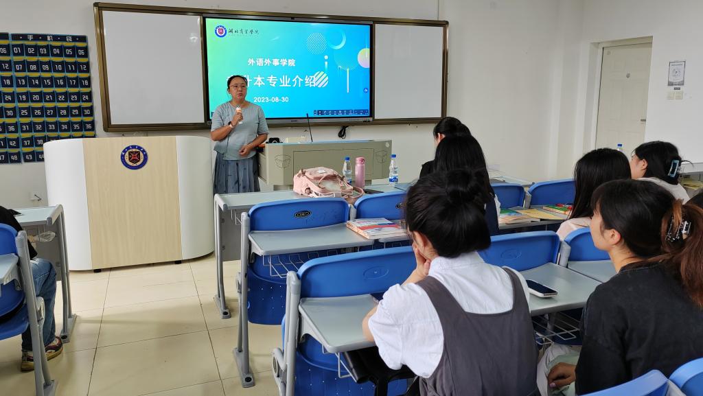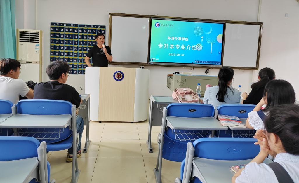8月30日,外语外事学院咸宁校区召开了专业介绍会,旨在让学生尽快适应本科学习生活,深入了解外语专业的基本情况,更好地规划自己的学业生涯。此次介绍会由学院邵建芳副院长、副院长武艳霞、教研室主任崔薰然主讲,2023级专升本新生参加了会议。
