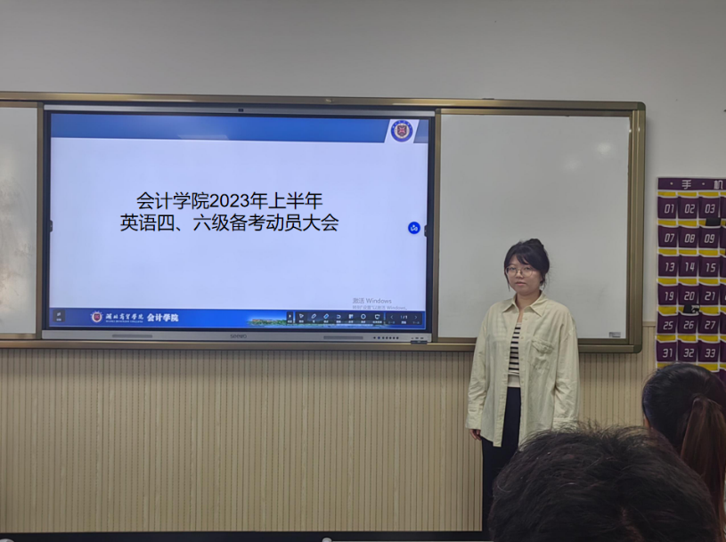 随着2023年上半年英语四、六级考试的临近,5月25日上午,会计学院组织开展2023年上半年英语四、六级备考动员活动。朱茜老师组织本次活动,会计学院20届、21届本科学生积极参与。