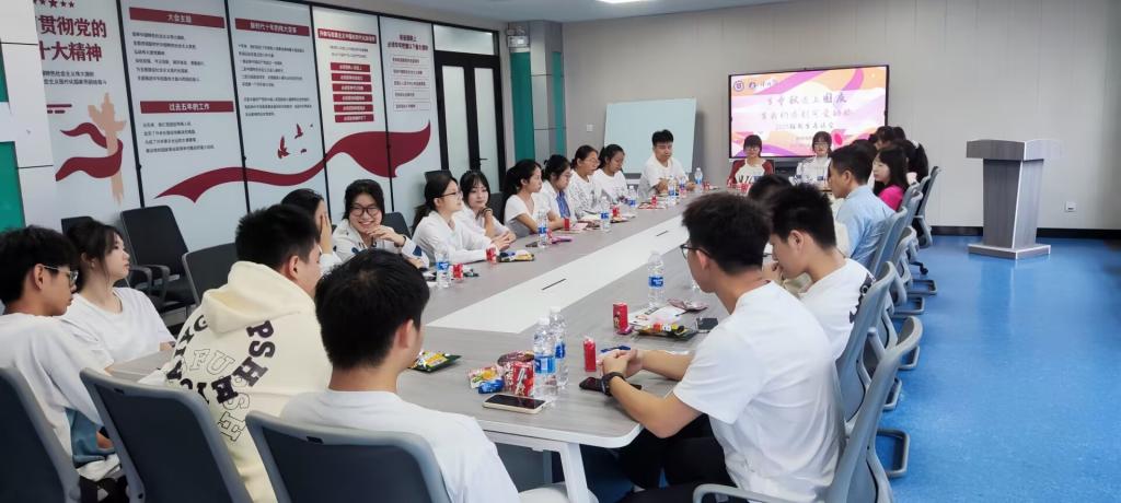 次日上午,经济学院院长陈靓秋、副院长盖卫东、党总支副书记谢志洋、新生辅导员关心怡又与23级新生代表欢聚一堂,大家吃零食喝牛奶,活动现场热闹温馨。