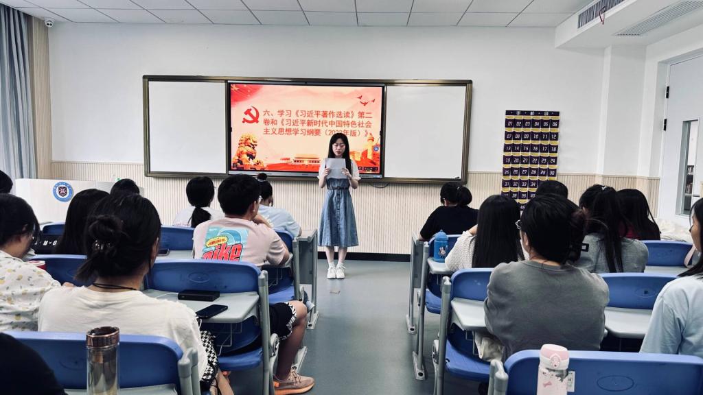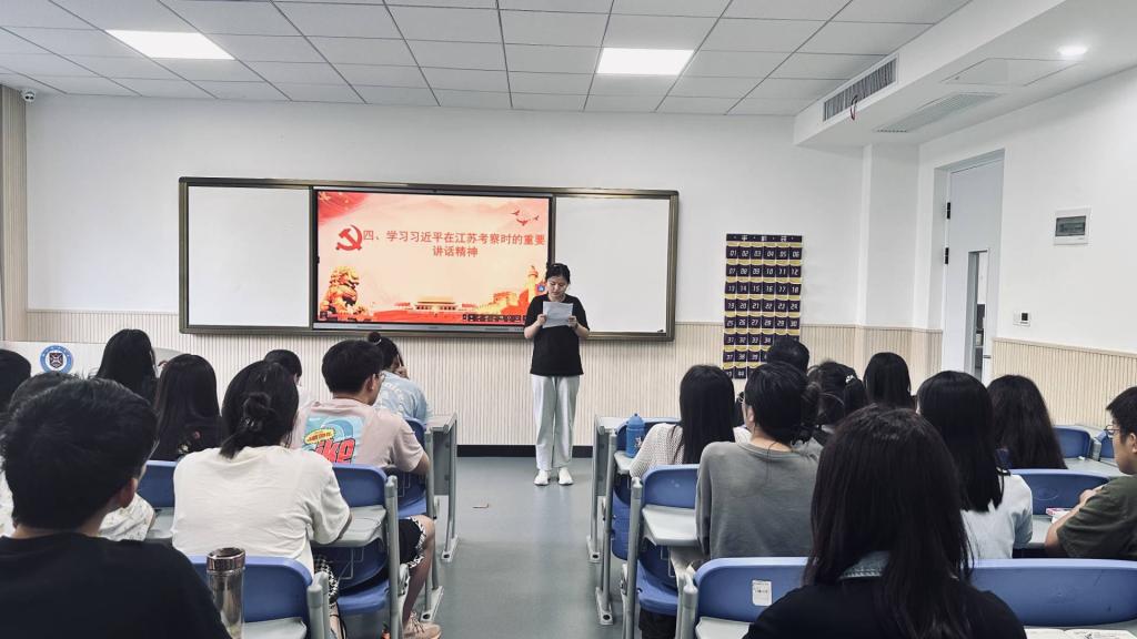 张贝贝同学带领大家一起学习习近平总书记在江苏考察时的重要讲话精神。指出各级党组织要教育引导党员、干部落实“重实践”要求,坚持学思用贯通、知信行统一,匡正干的导向,增强干的动力,形成干的合力,在以学促干上取得实实在在的成效。