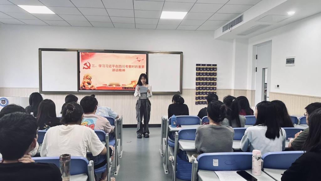 首先,马丽娟同学同全体学生党员一起学习习近平总书记在四川考察时的重要讲话精神。习近平总书记的川陕之行,是对中华优秀传统文化的追寻,也是努力建设中华民族现代文明的宣示。学生党员更要做好带头模范作用,了解中华文明的博大精深,更好传承中华优秀传统文化,讲好中国故事,在新的起点上助力推动文化繁荣、建设文化强国、建设中华民族现代文明。